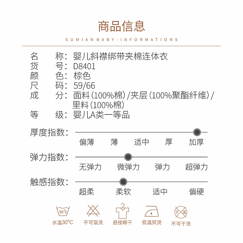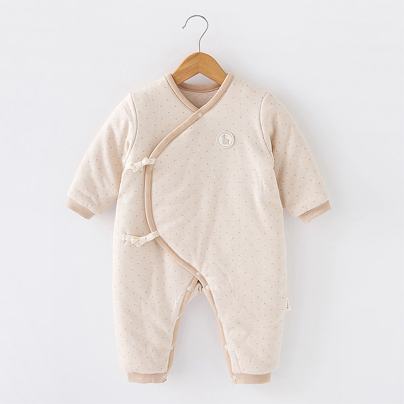 名称:婴儿斜襟绑带夹棉连体衣